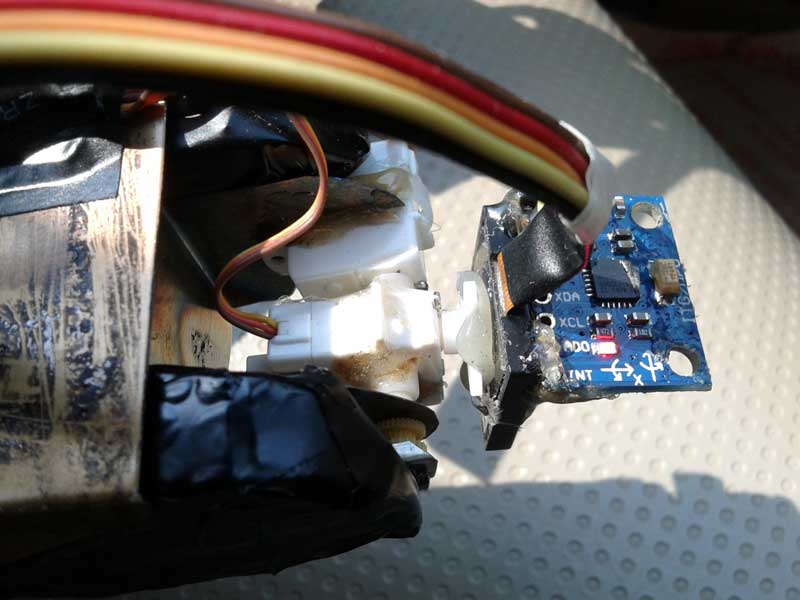 After you sure with the connection now you can replace the dummy camera (if you using dummy camera for previous step) glue it to the servo bracket. Then hot glue the sensors on top of the camera.